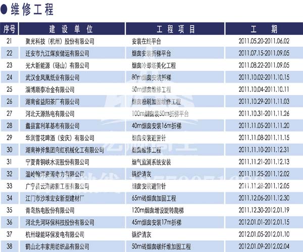 宏順建設(shè)工程有限公司是國家批準成立的專業(yè)高空作業(yè)企業(yè):承攬過(國內(nèi).國外)煙囪新建、煙囪防腐、磚煙囪新建、煙囪改造、煙囪維修、煙囪脫硫防腐、煙囪拆除加高、煙囪滑膜等高空作業(yè)工程。具有“不搭腳手架 、 不需要停產(chǎn)”施工特點。